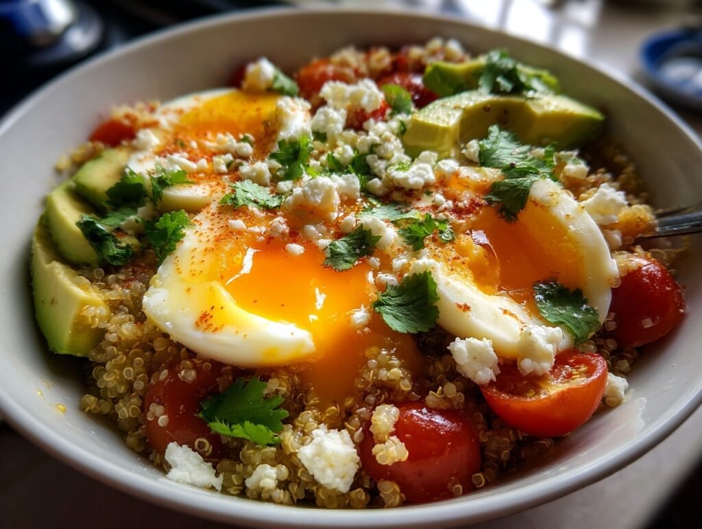 9. Serve immediately while eggs are warm and quinoa steamy—the colors will gleam, inviting your first crave-worthy bite.