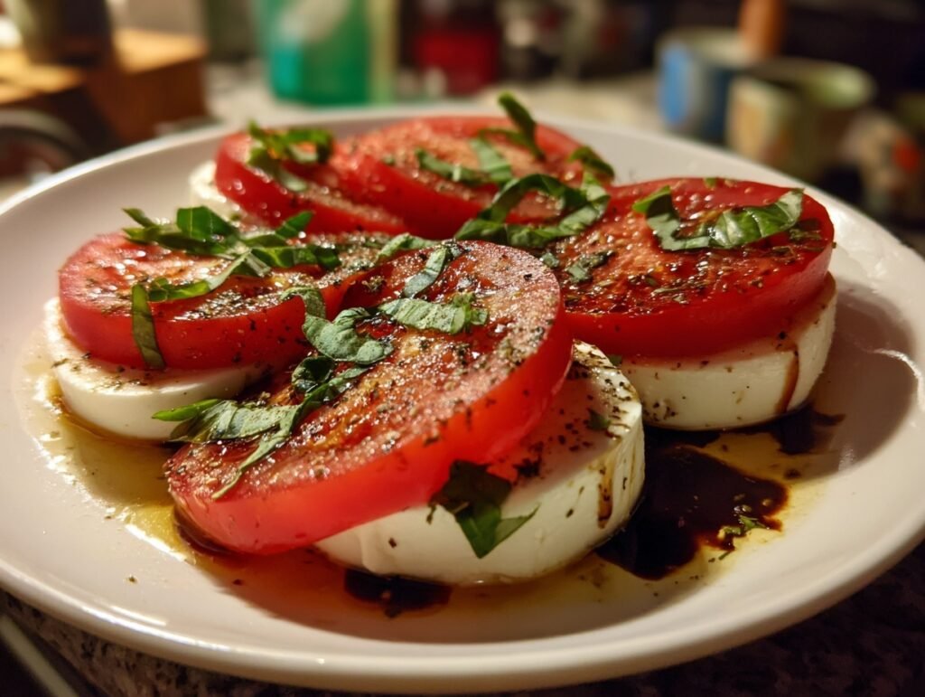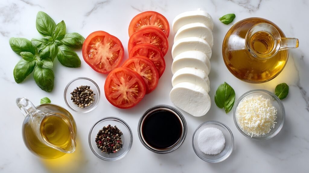 These ingredients shine in perfect harmony: ripe tomatoes provide juicy sweetness, fresh mozzarella adds creamy silkiness, and basil brings aromatic brightness. Extra-virgin olive oil and balsamic vinegar tie it all with glossy richness and a sweet-tart zing, while salt and pepper amplify every fresh bite for an authentic Italian escape.