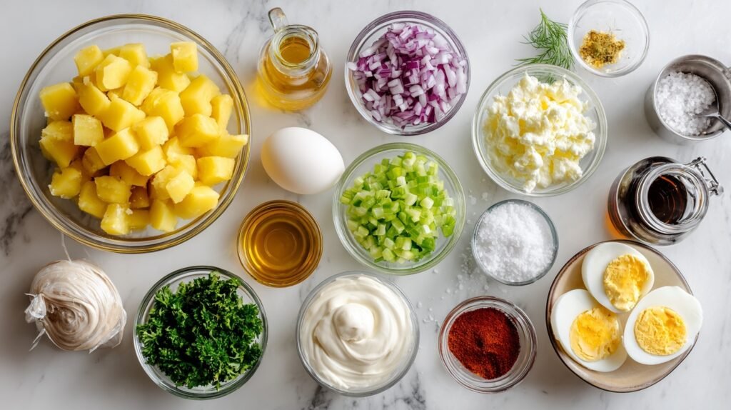 These ingredients harmonize brilliantly in Classic Potato Salad: starchy potatoes provide fluffy texture, creamy mayo and mustard form a luscious dressing, while celery, onion, eggs, and relish add crunch and tang. Apple cider vinegar and sugar balance acidity with subtle sweetness, seasoned perfectly with salt, pepper, parsley, and paprika for a fresh, vibrant finish that screams summer.