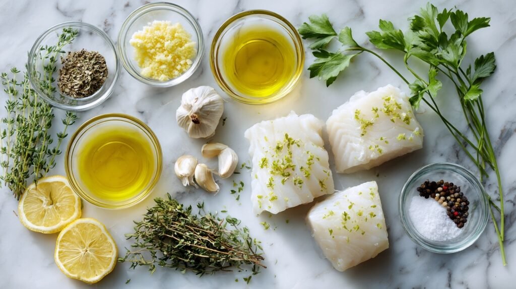These ingredients harmonize beautifully: fresh cod provides mild, flaky sweetness elevated by olive oil’s richness, garlic’s punch, and lemon’s zing. Thyme and oregano add woodsy depth, while salt, pepper, parsley, and lemon slices ensure balanced, vibrant flavor without overpowering the star—cod.