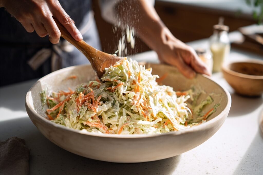1. Shred cabbage super fine: Thinner strips absorb dressing better and stay crisp longer. Use a food processor’s slicing blade for speed and uniformity—avoid over-processing to prevent mush.