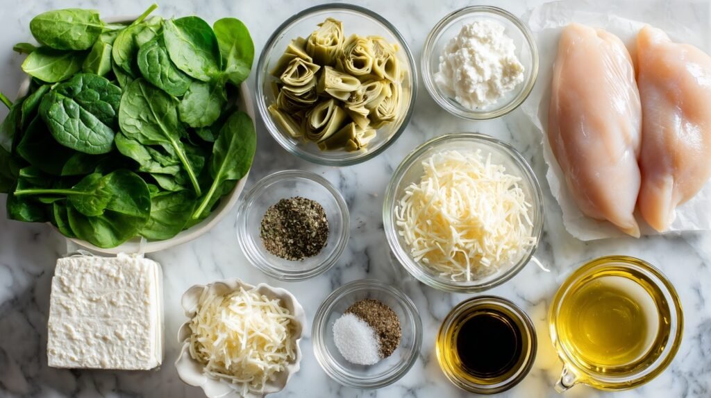 Get ready to create magic with this Spinach Artichoke Chicken! These steps are foolproof, building layers of flavor for a dish that’s as fun to make as it is to eat. Preheat your oven and let’s dive in—you’ve got this.