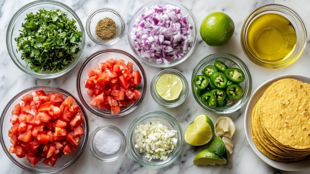 These ingredients harmonize perfectly: juicy tomatoes provide a sweet base, balanced by onion’s sharp bite, jalapeños’ heat, and lime’s zing. Cilantro and garlic add herbaceous depth, cumin a smoky whisper, while olive oil and sea salt transform tortillas into irresistible crisps. Freshness rules for maximum flavor explosion.