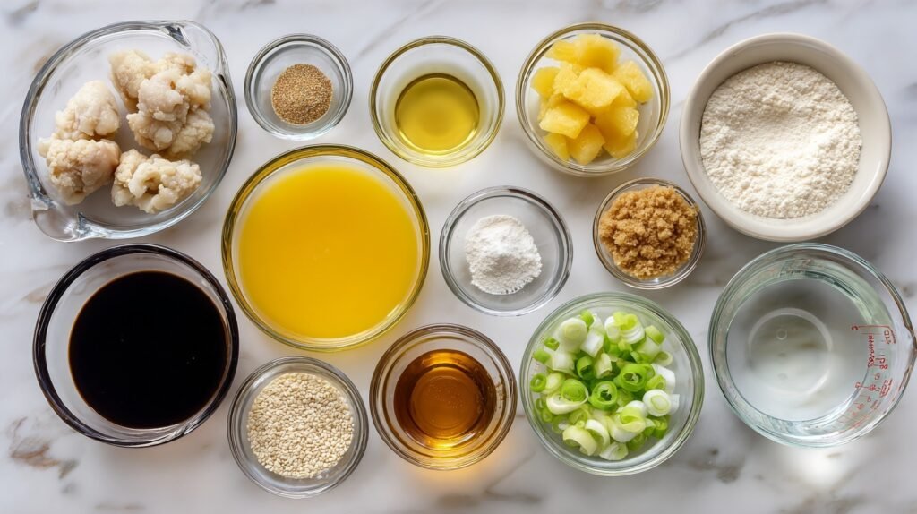 These ingredients harmonize beautifully: soy sauce and brown sugar create a umami-sweet base, pineapple juice adds tropical tang, while ginger and garlic deliver fiery depth. Sesame oil brings nutty richness, and cornstarch thickens the glaze to perfection. Simple, bold synergy for irresistible flavor.