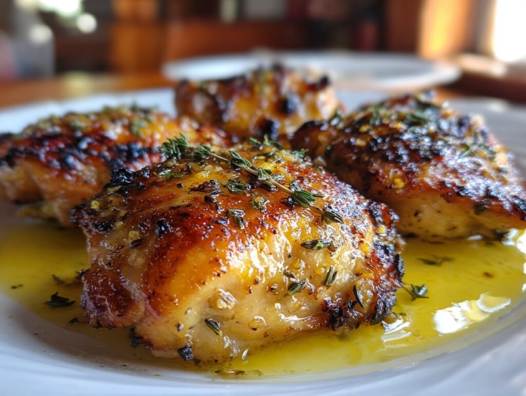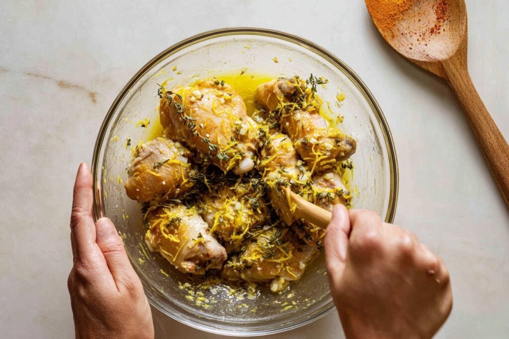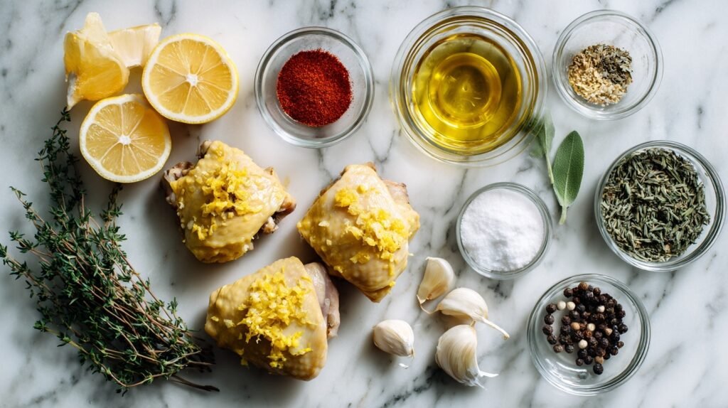 These ingredients harmonize brilliantly: lemon’s zing cuts through rich chicken thighs, garlic and herbs build savory depth, olive oil ensures crispy skin, and spices add a smoky edge. It’s a foolproof combo for juicy, flavorful results that look as good as they taste.